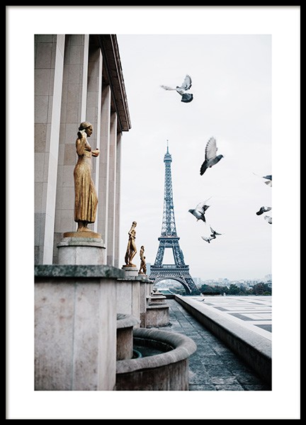 Eiffel Tower and Flying Pigeons Poster