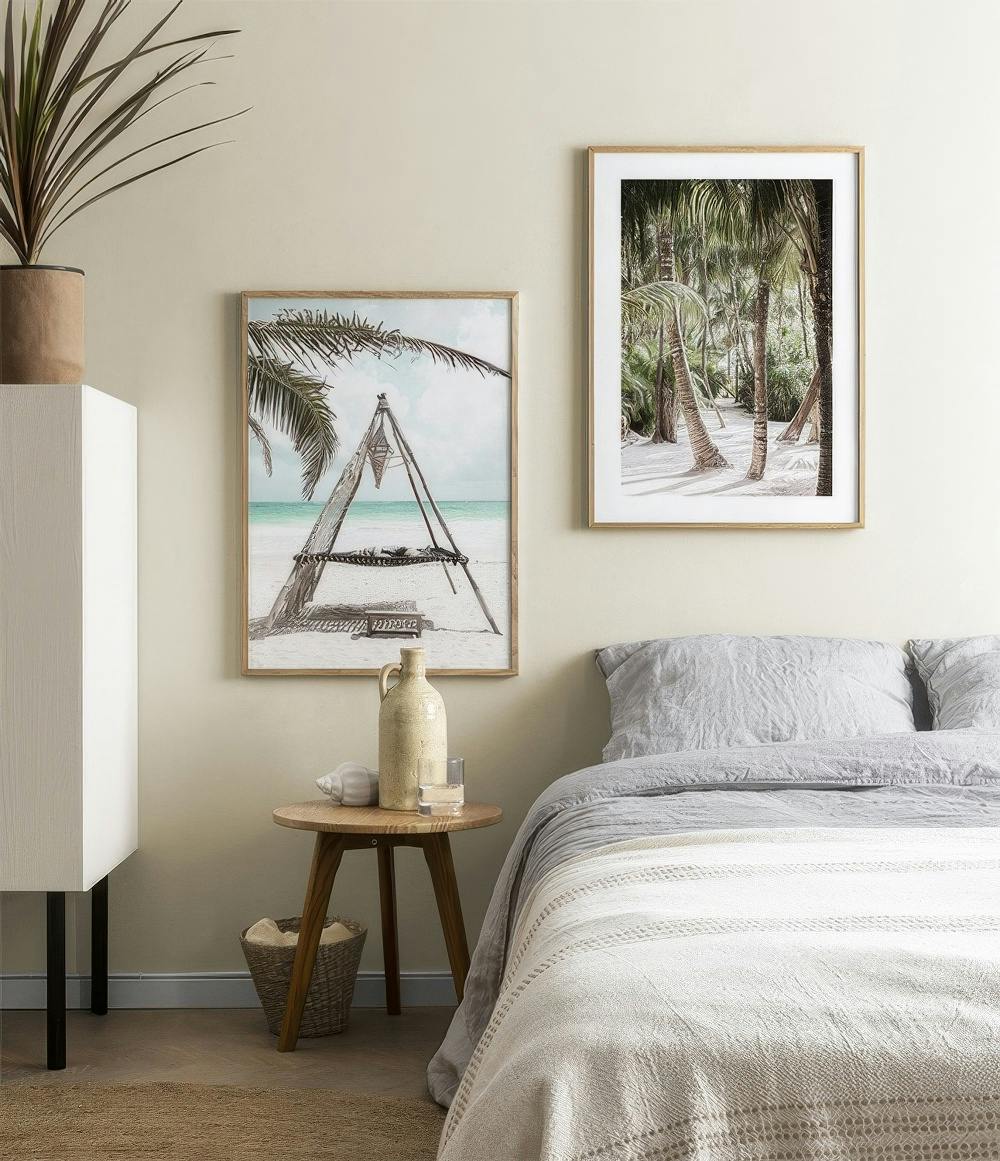 A sonhar no paraíso. Este conjunto de posters irá trazer um look acolhedor ao seu quarto. Se pretende acordar com vista para uma praia de sonho e palmeiras, então esta é a escolha perfeita para si. Adquira aqui este par perfeito de posters!