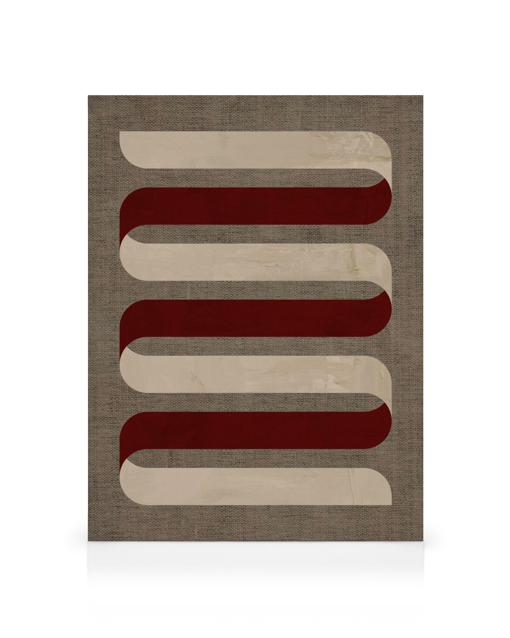 Uma tela decorativa deslumbrante com riscas curvas em creme e vermelho escuro que criam um padrão dinâmico.