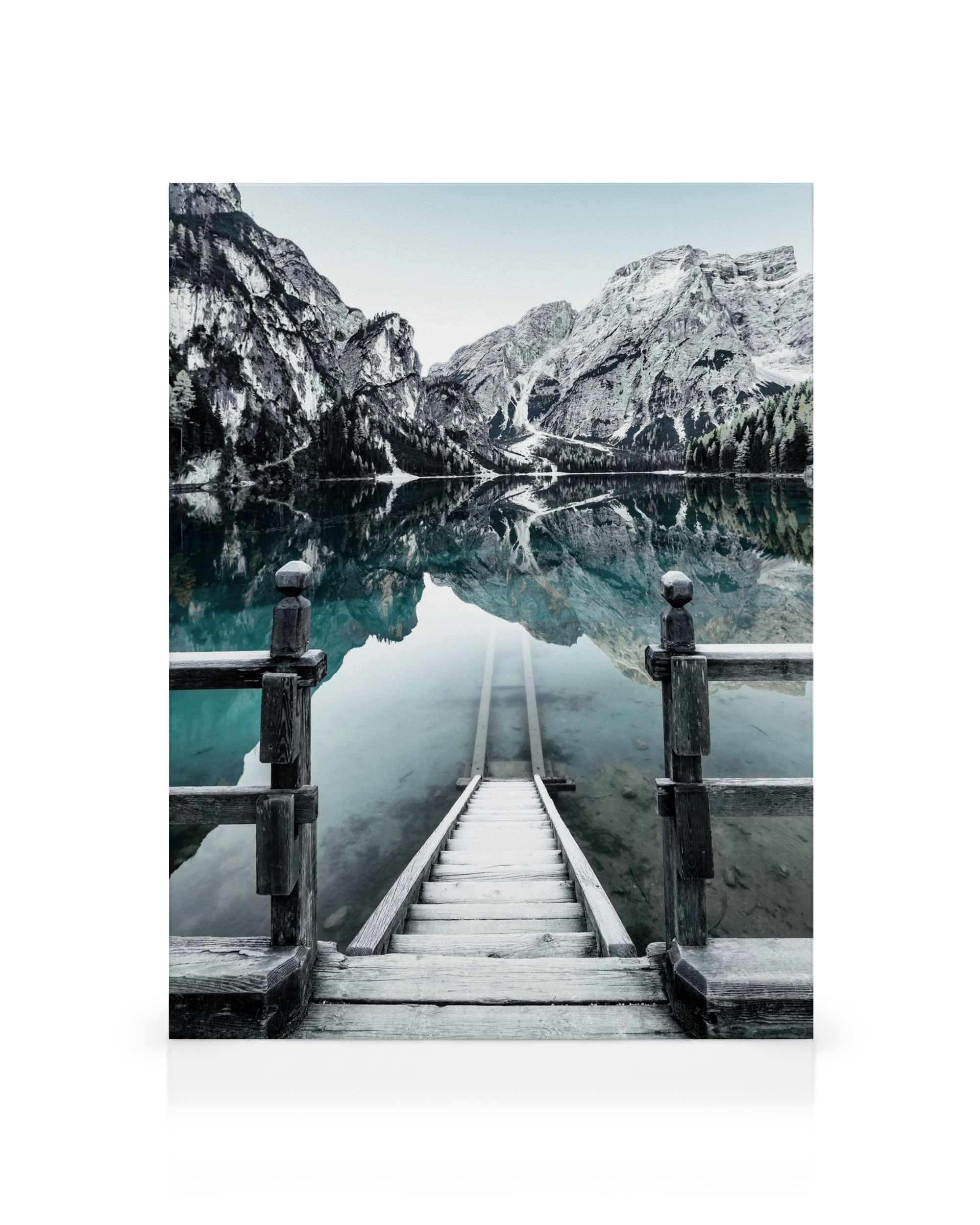 A partir de 24,95 €Esta impressionante tela decorativa apresenta uma bela foto de um cais de madeira levando a um lago calmo, cercado por montanhas. Os tons suaves de azul, verde e cinza criam uma paisagem tranquila que ficará perfeita na sua parede.