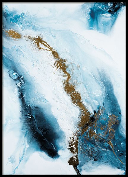 Temas da Escolha especial Pintura abstrata em branco, azul e dourado. A pintura original foi pintada em acrilico numa tela, fazendo com que as marcas de pincel e da esturuta da tela, ainda sejam bem visiveis no poster. Se quer ter uma casa bonita, a arte abstrata é a sua nova melhor amiga! Com os remoinhos e cores ousadas, este poster traz com ele um feeling de luxúria.