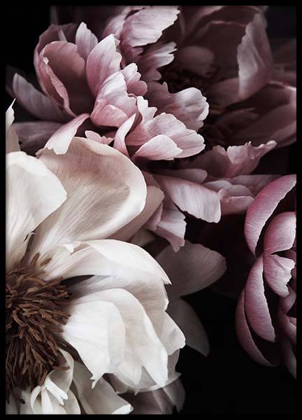 Temas da Escolha especial Poster botânico escuro que fica lindamente num quarto de dormir romântico. As flores de lilás claro contra o fundo escuro, têm um ar luxuoso que fica lindamente com móveis com veludo. Combine com um quadro elegante que crie um contraste interessante, ou com outro dos nossos quadros de flores.