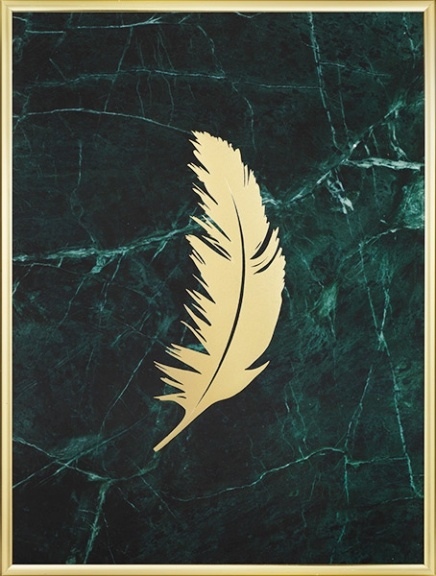 Feather Gold Green Marble Poster