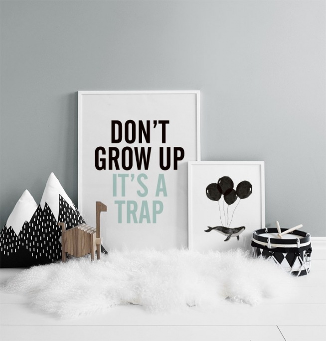 A partir de 5,57 €Poster com o texto ‘Don't grow up it's a trap’ em azul e preto. Querido e engraçado para quartos de crianças. Encontra mais quadros com texto e quadros para crianças nas nossas categorias, e pode combinar posters numa collage, para alegrar qualquer parede.
