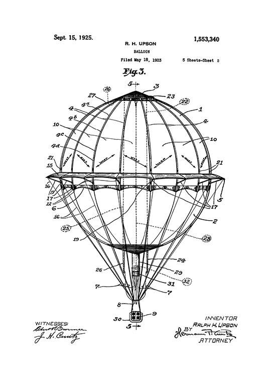 Hot Air Balloon Patent Poster no grupo Posters  / Vintage em Desenio AB (2348)