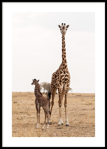 Mother and Baby Giraffe Poster