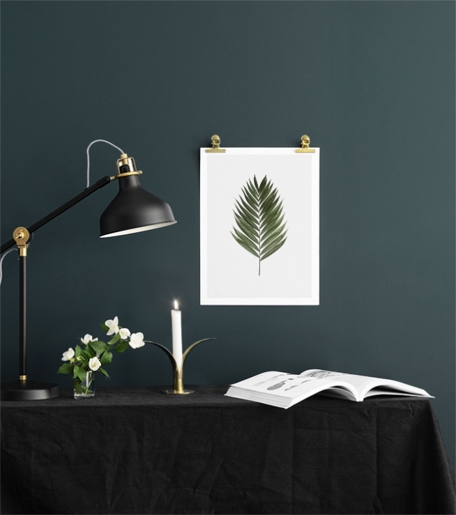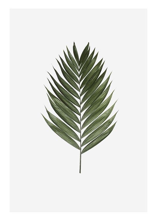Poster med motivet av ett palmlöv. Naturmotiv med grönt löv.