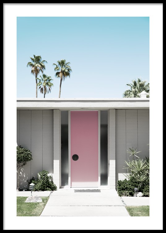 Temas da Escolha especial Os nossos criativos visitaram Palm Springs para fotografas as casas brancas-cal, com as portas coloridas como se vê nas redes sociais. Vê-se logo porquê que as portas são tão populares, e ficam perfeitamente bem em sua casa para criar uma sensação de férias tropicais. O poster tem um bordo branco à volta que emoldura muito bem a imagem.