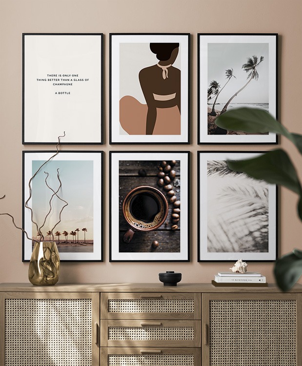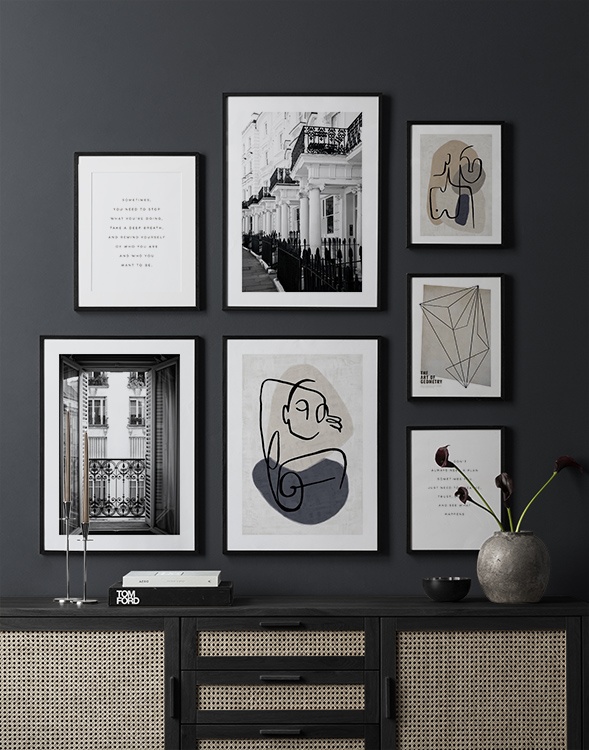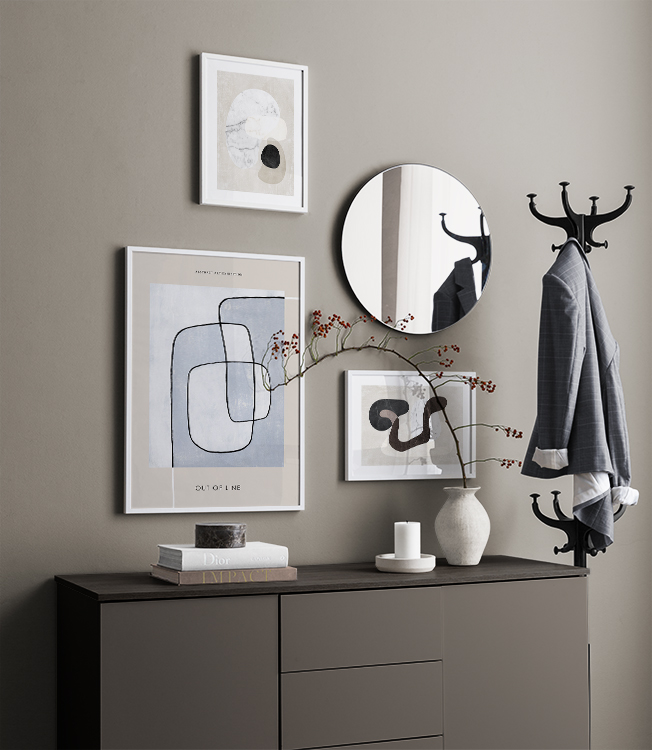 Uma das nossas melhores sugestões é usar a arrumação para pendurar a arte, não precisa de fazer furos na parede! Pouse os quadros no móvel ou no banco da entrada, contra a parede, ou coloque uma decoração à volta da arte. Desta forma, pode facilmente variar a decoração da entrada conforme a estação e a sua disposição! Se prefere pendurar a arte, pode criar uma parede de quadros moderna, que fica bem em entradas grandes ou pequenas.