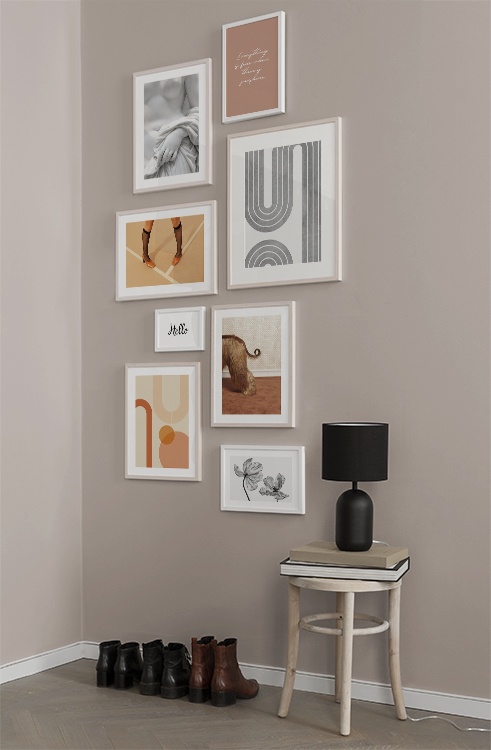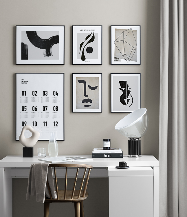 Posters gráficos trazem um toque moderno e artístico à sua casa, e as nossas paredes de quadros podem ser usadas em qualquer divisão da sua casa. Você é o único a impor o limite, então secalhar esta é a altura certa para sair da sua zona de conforto e escolher uma parede de quadros gráfica que se destaque.