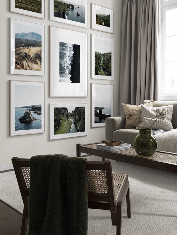Paredes de quadros com posters da natureza são uma óptima escolha para quando pretende criar uma casa mindful ligada à natureza. O mundo maravilhoso que nos rodeia, tem tanto para nos oferecer, e entre as nossas opções de paredes de quadros com posters da natureza, poderá encontrar os mais variados temas, desde oceanos a montanhas ou desertos.