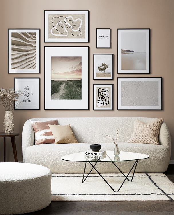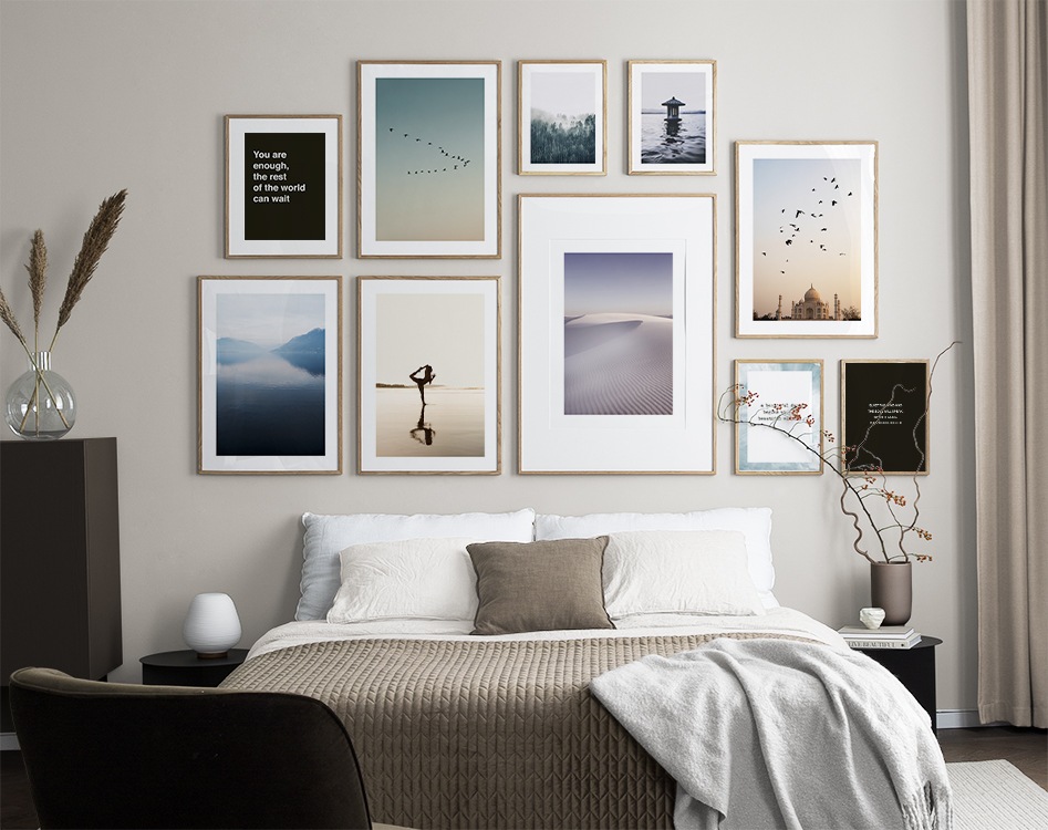 O que mais amamos acreca das paredes de quadros é que elas têm um efeito calmante nas nossas casas. Ao trazer alguns elementos da natureza para a sua casa, você será capaz de encontrar paz interior, e a arte que tem em sua casa deve refletir quem você é na sua essência.