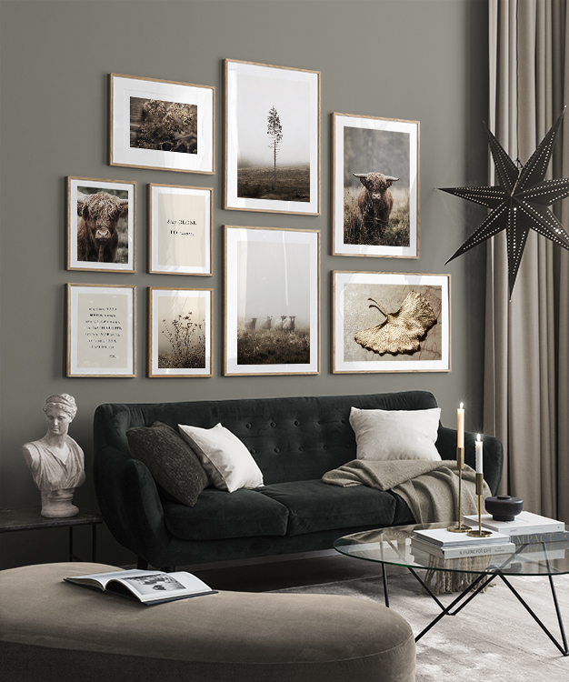 Paredes de quadros com posters da natureza