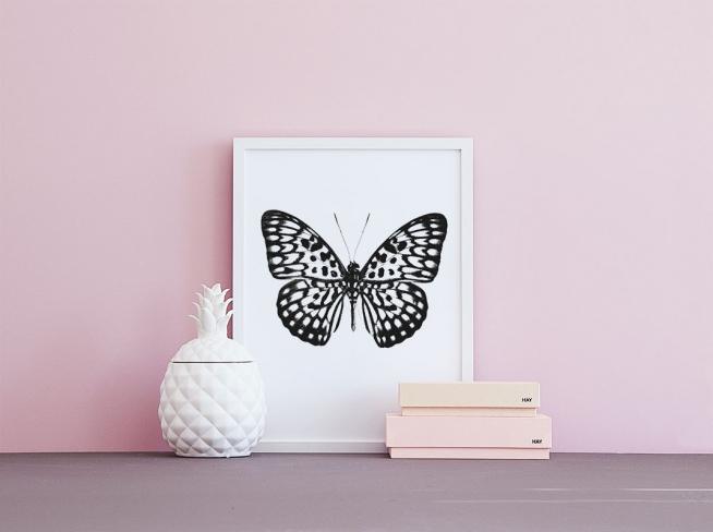 Poster / affisch med svartvit fjäril