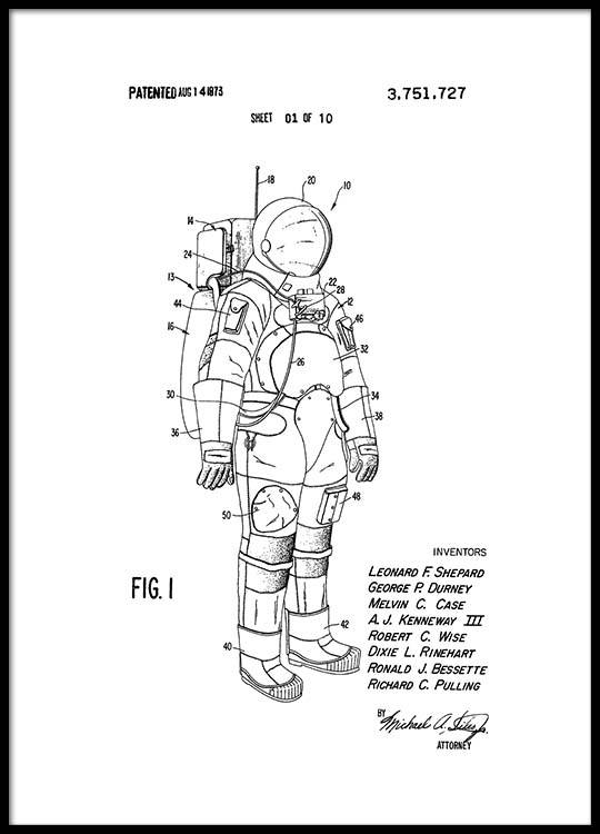 Space Suit Patent Poster no grupo Posters  / Vintage em Desenio AB (2343)